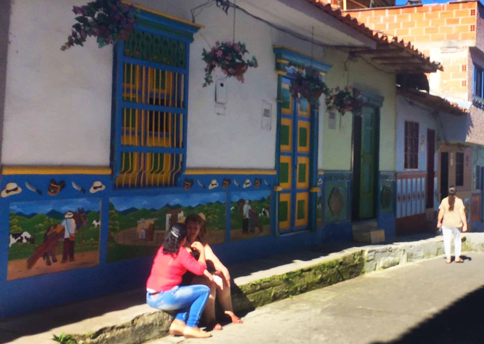 Tiny cobblestone streets wind through colorful shops and homes adorned with Zocalos, painted murals depicting traditional scenes. The narrow streets barely wide enough for a car are mostly used by motorcycles or tuk-tuks.
